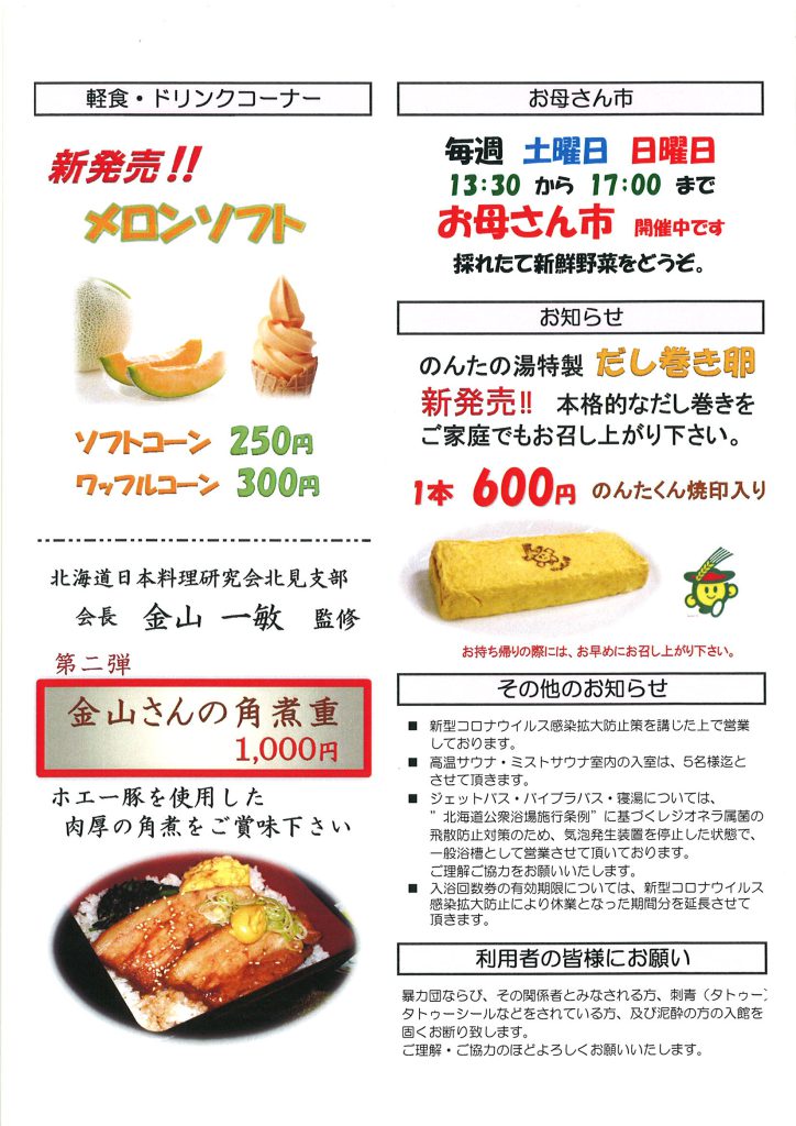【のんたの湯】お知らせ