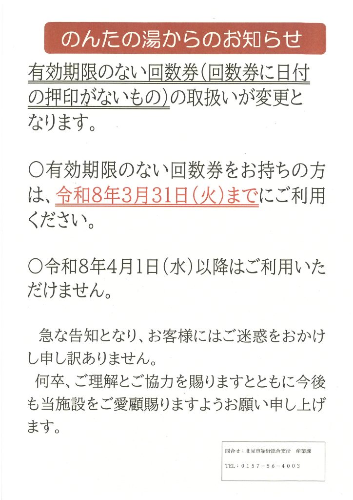 【のんたの湯】重要なお知らせ