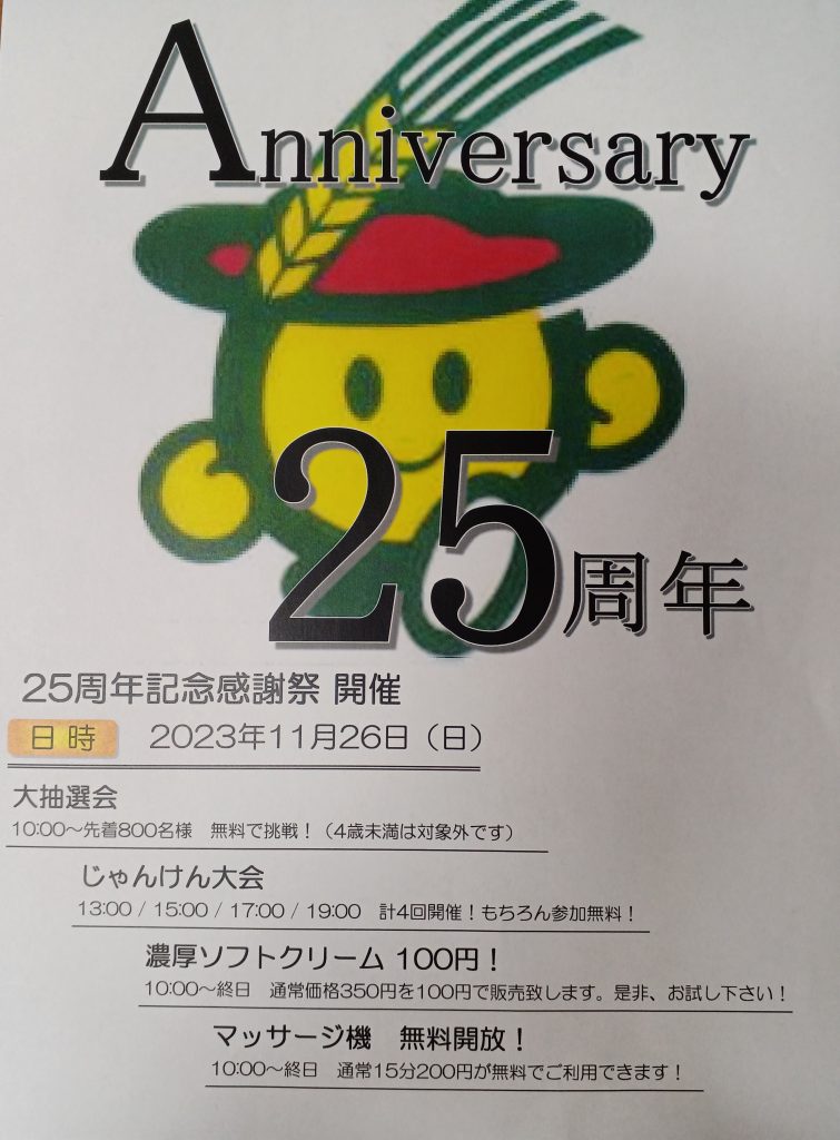 【のんたの湯】25周年記念感謝祭のお知らせ