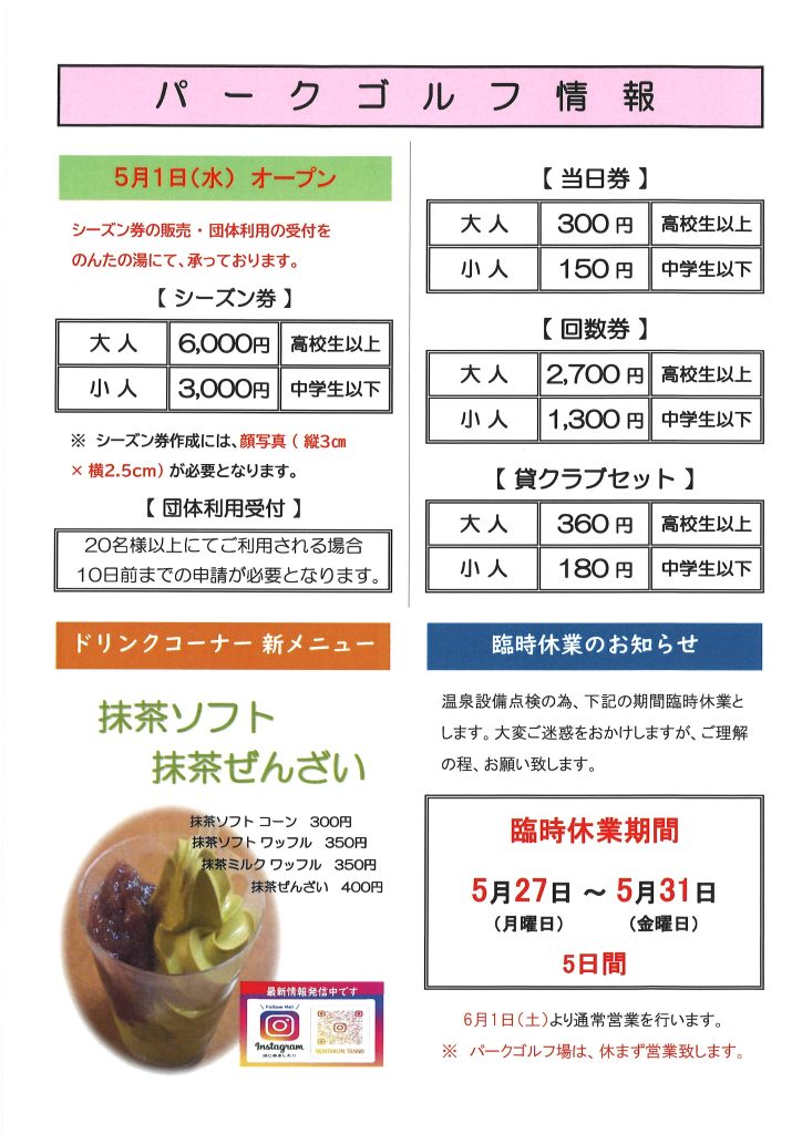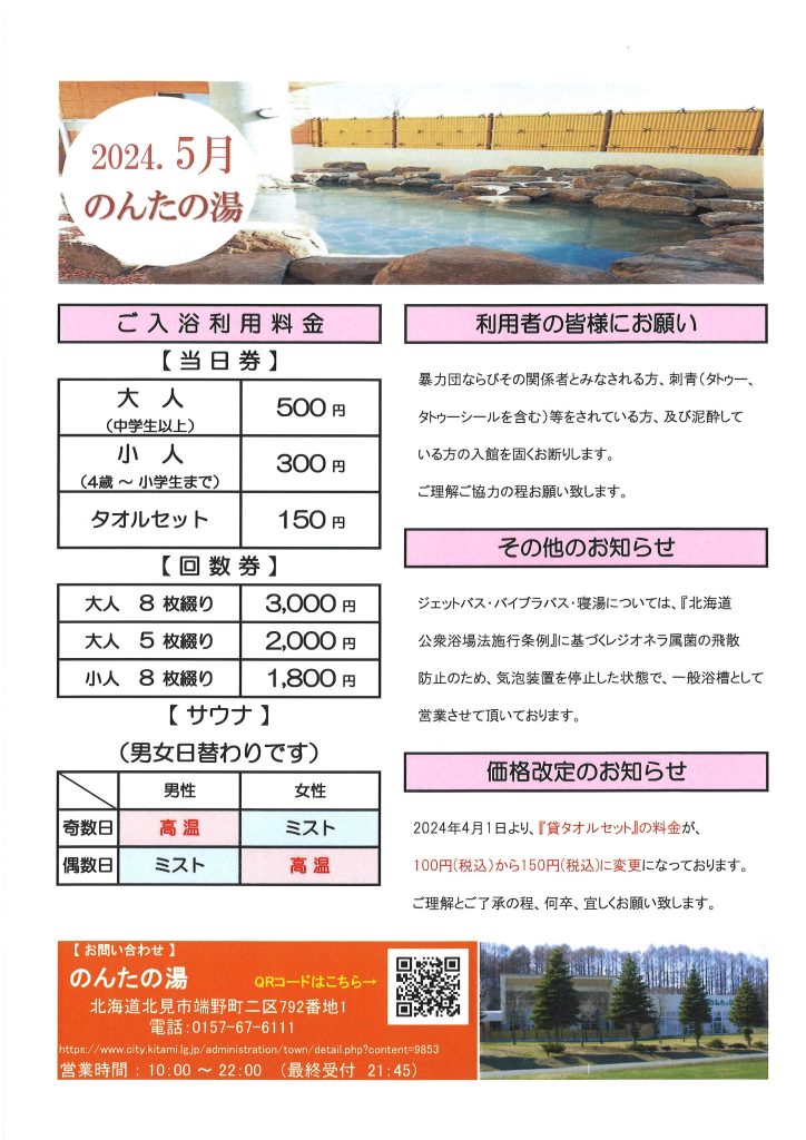 【のんたの湯】5月のお知らせ