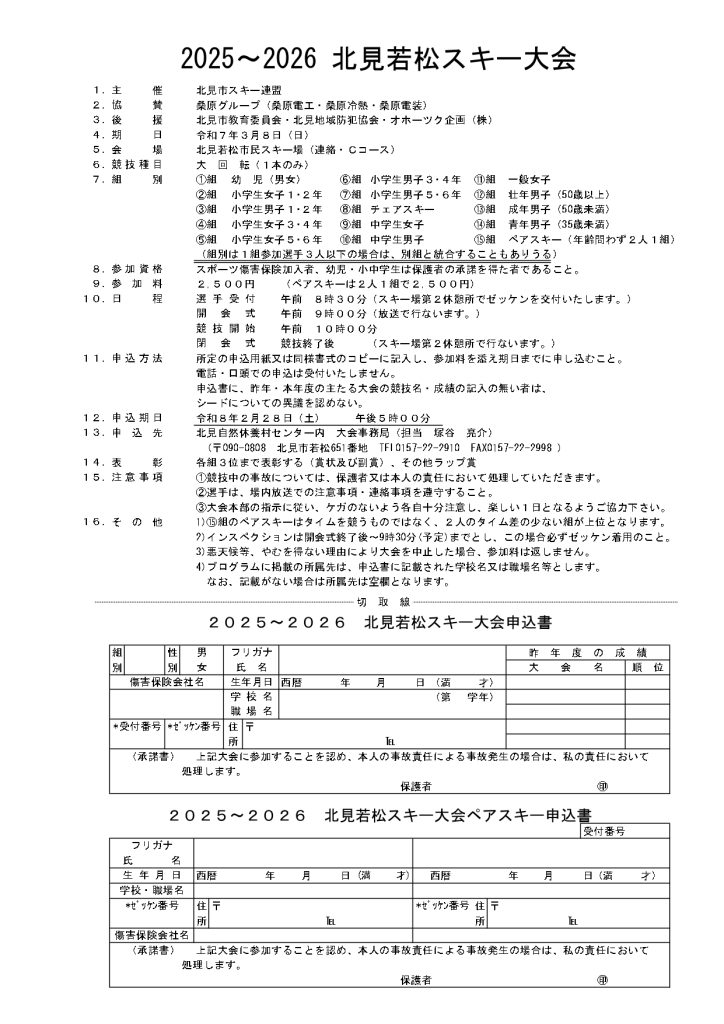 【3月8日】2026北見若松スキー大会について 2026-02-11 最終更新日時 : 2026-02-11 kousya-admin 令和8年3月8日に北見若松スキー大会が開催さるため、 Cコースは大会終了まで一般のお客様はご利用できません。 ご理解とご協力の程、よろしくお願いいたします。