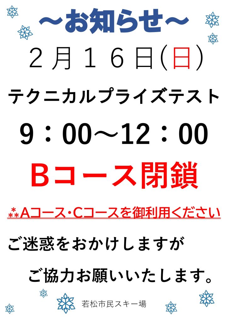 2月16日(日)テクニカルプライズテストのお知らせ。